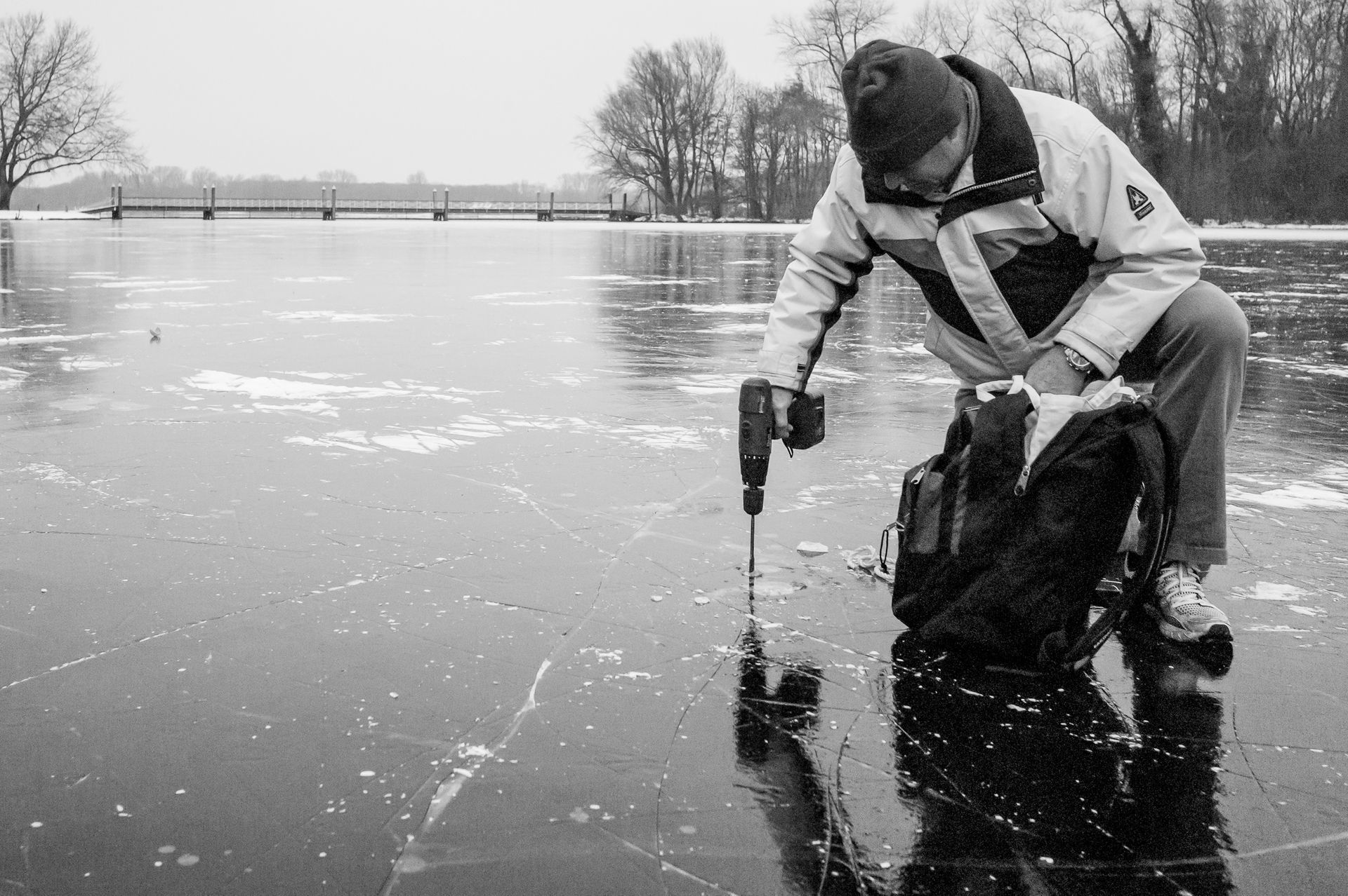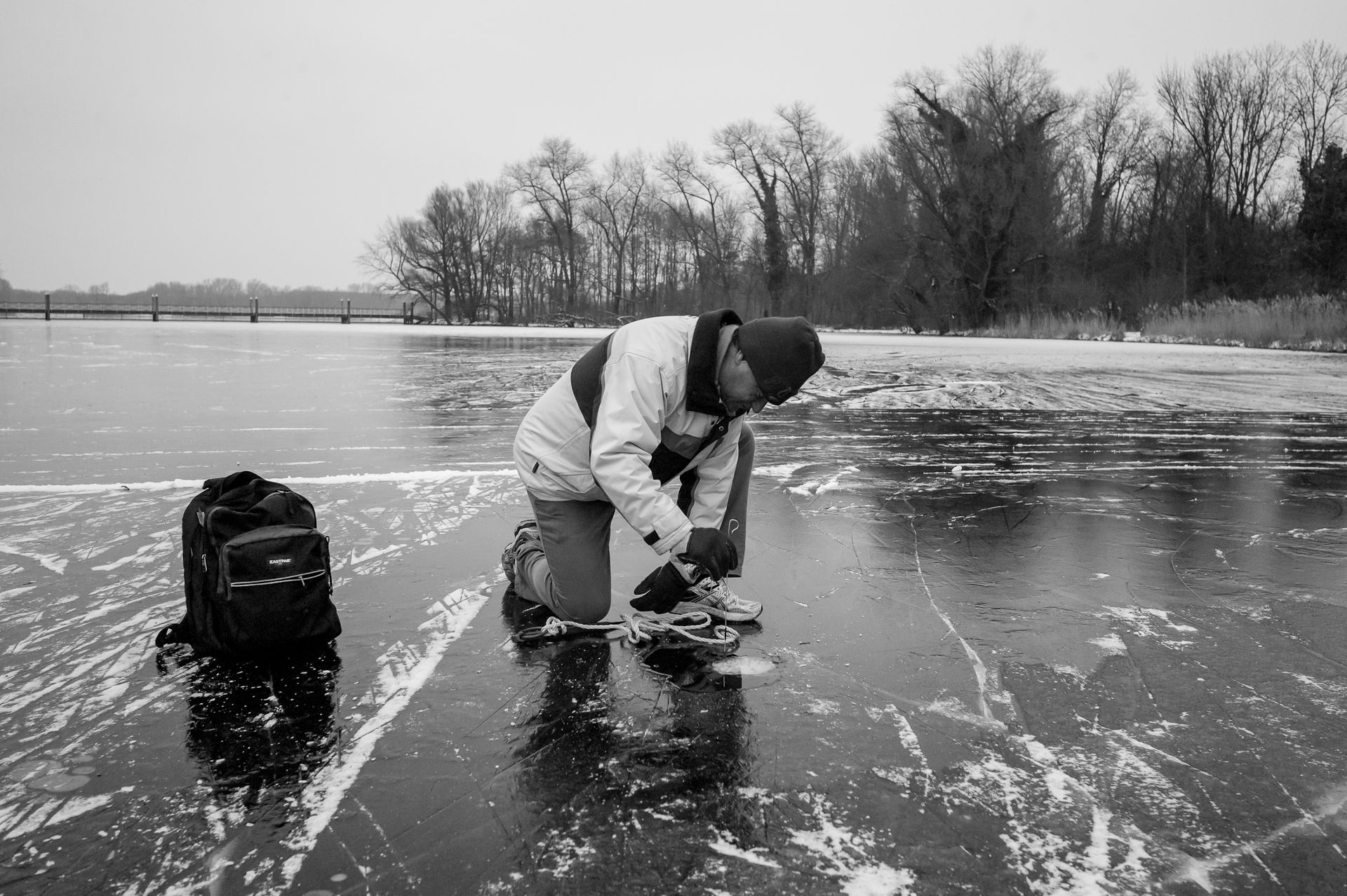 de IJsmeester meet de dikte van het ijs 2013 foto's: © Roderik van Nispen